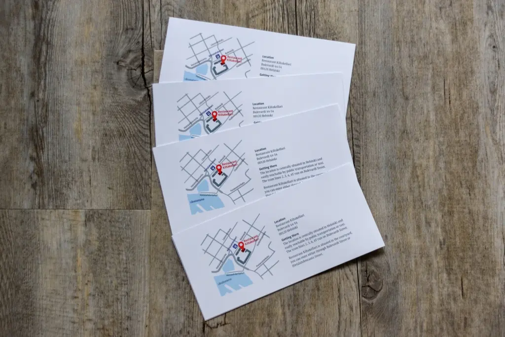 Das Layout der Einladung wurde mit Adobe InDesign erstellt, der Stadtplan mit Adobe Illustrator. Für die Druckoptimierung des „Stockfotos“ (lizenzfreies Bild) von Helsinki kam Adobe Photoshop zum Einsatz. Die Aufbereitung und Überprüfung – dem sog. Preflight – der Druckdaten gemäß PDF/X Standard wurde mit Adobe Acrobat durchgeführt.