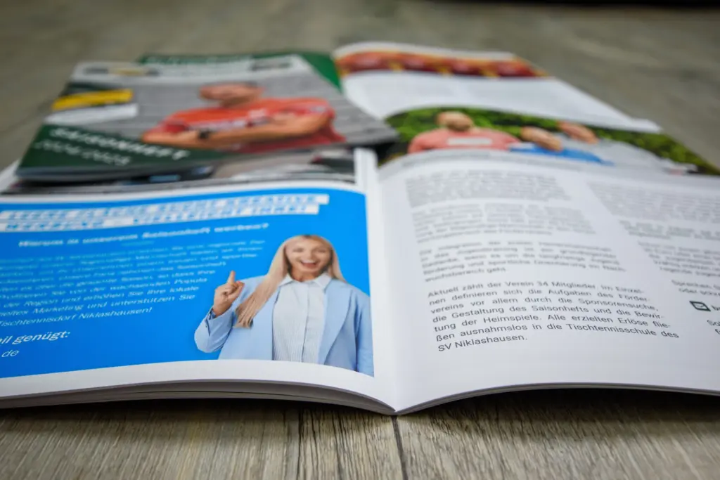 Diese erweiterte Reichweite bedeutet nicht nur sportlich einen Meilenstein für den SVN, sondern bietet auch den zahlreichen Sponsoren und Werbepartnern eine deutlich größere Präsentationsplattform. Für die neu hinzugekommenen Unterstützer habe ich im Rahmen der Broschürengestaltung maßgeschneiderte Werbeanzeigen erstellt, während ich bestehende Anzeigen qualitativ optimiert und inhaltlich aktualisiert habe. Zusätzlich entstanden zwei Werbehinweise für potenzielle Sponsoren, um weitere Partnerschaften zu initiieren. Das bewährte Grundlayout habe ich dabei unverändert gelassen – ein Zeichen für die Kontinuität und Wiedererkennbarkeit des Saisonhefts.