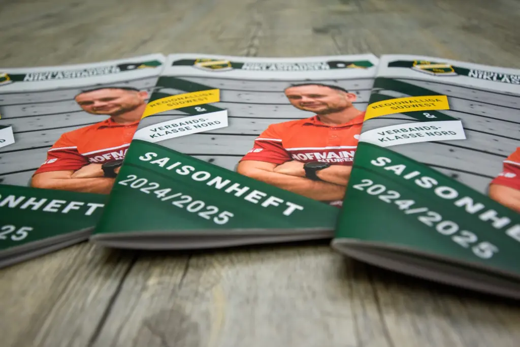 Im Vergleich zum knappen Produktionszeitplan der Vorsaison startete die Layouterstellung 2024/2025 mit deutlich früherer Datenbereitstellung. Dies ermöglichte eine entspannte Arbeitsweise mit lediglich zwei Korrekturläufen bis zur Druckreife. Die professionelle Bildbearbeitung mit Adobe Photoshop sowie die präzise Datenaufbereitung für KWG Druck & Medien sorgten für ein hochwertiges Endprodukt.