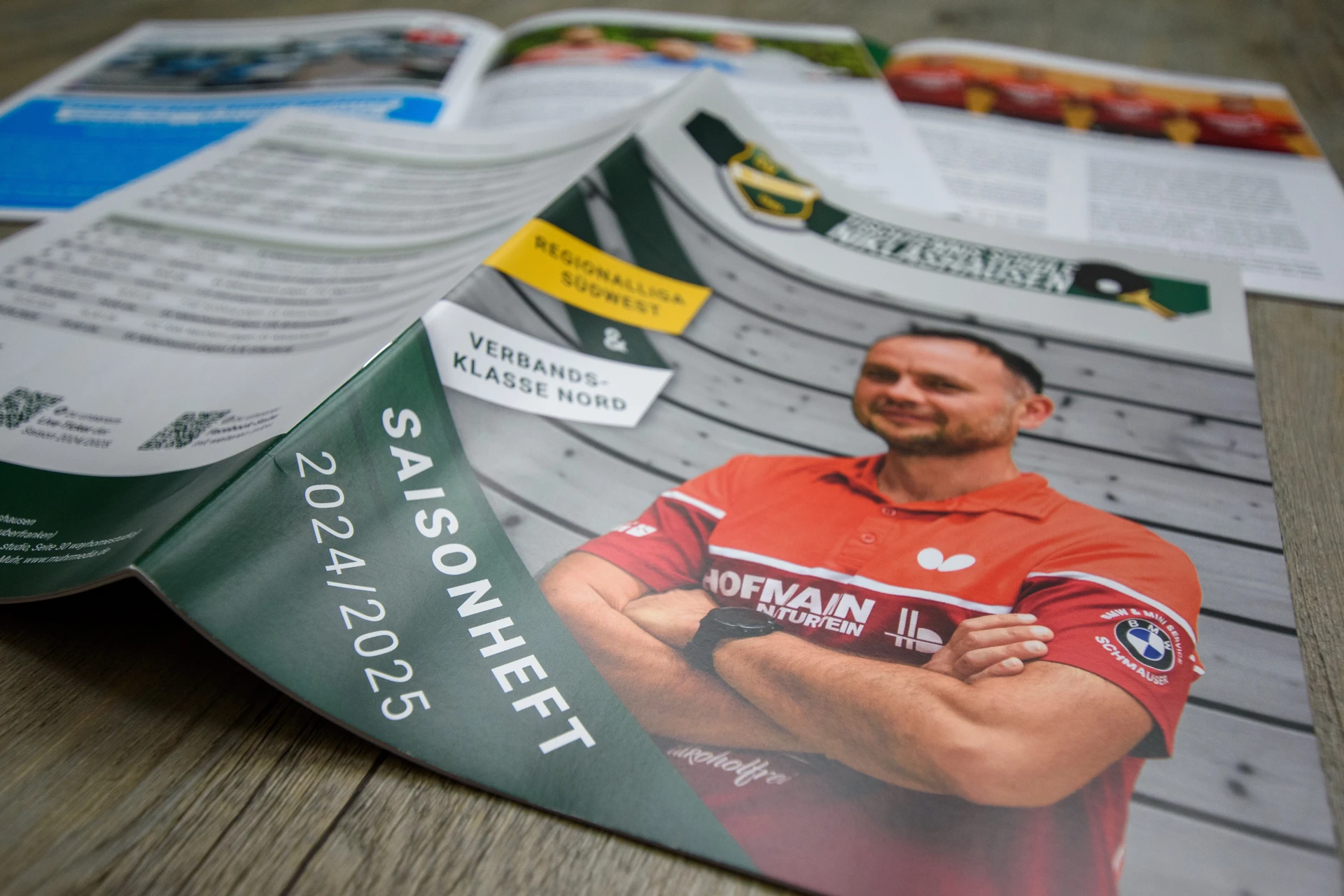 Im Vergleich zum knappen Produktionszeitplan der Vorsaison startete die Layouterstellung 2024/2025 mit deutlich früherer Datenbereitstellung. Dies ermöglichte eine entspannte Arbeitsweise mit lediglich zwei Korrekturläufen bis zur Druckreife. Die professionelle Bildbearbeitung mit Adobe Photoshop sowie die präzise Datenaufbereitung für KWG Druck & Medien sorgten für ein hochwertiges Endprodukt.